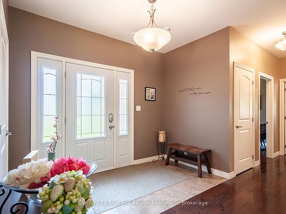 Welcome to this beautiful 3+1 bedroom, 2.5 bathroom, spacious bungalow with attached double car garage on a beautiful level lot. Built in 2014, this one owner country home has been immaculately cared for inside and out. The main floor offers a spacious foyer leading into the open concept living area with a large and bright living room with tray ceiling and beautiful hardwood floors. Dining area with direct access to the covered back deck overlooking the private yard. Stunning custom kitchen the true heart of the home featuring a large island, bar seating, granite counters and ample cabinet space. Main floor primary suite with 4pc ensuite and walk-in closet. 2 further good sized bedrooms and a convenient laundry/mudroom with direct access to the insulated double car garage. The lower level is fully finished with a large rec room ideal for entertaining and space for a home gym etc. 4th bedroom, 2pc bath, office, storage room and utility room. There is ample space for the whole family! The exterior offers plenty of parking, storage shed and wood shed and room for kids or pets to play. Walking distance to 18 hole Laurentide Golf Course and a short drive to all area amenities including regional hospital, schools and so much more!