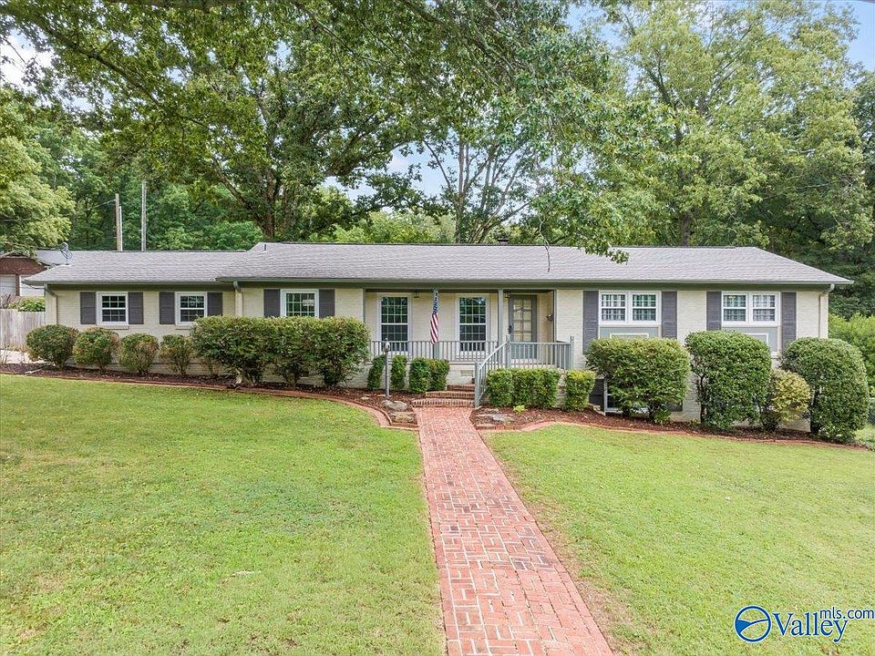 Beautifully updated and meticulously maintained 3/2 rancher on a large corner lot in sought-after Blossomwood neighborhood. Additional living space downstairs w/ large bonus room and lovely sunroom off kitchen. All new hardwood floors throughout & interior painted July 2023. All new windows, all stainless appliances. WB Fireplace. Two car garage & workshop. Large storage room downstairs. Electrical panel - 200 amp, attic tent 2021, driveway repoured & Drain 2018, new attic insulation 2017, radon system. Exterior repainted 2022. Close to Downtown. Great schools, community pools & trailheads w/in walking distance. Convenient commute to the medical district, Redstone Arsenal and Research Park.