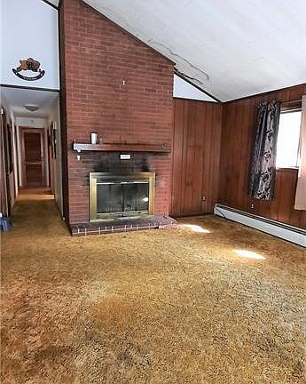 Single level home located in East Putnam. Large open floor plan features dining area, kitchen and living area. Cathedral ceiling fireplace and slider to deck. Fully applianced including wine refrigerator washer and dryer. Central vac. Lower level has family room with fireplace, garage door access, full bath and laundry room. Outbuildings include shed, RV structure, 24 feet by 20 feet, 16' high with hookups, and 1 1/2 story barn with attached garage. Lot is flat and open. An additional 4 acre buildable lot , located to the east, is available.