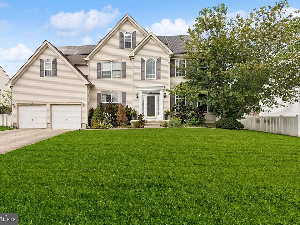 Welcome to this stunning Toulouse Model home featuring 4 bedrooms, 2.5 bathrooms, and over 3,000 square feet of elegant living space, perfectly situated in the sought-after Glen Eyre development. Step into the dramatic two-story foyer, where soaring ceilings and beautiful tile flooring set the tone for the rest of the home. To your right, a spacious living room showcases crown molding and gleaming hardwood floors. To your left, the formal dining room offers crown and chair-rail molding, hardwood floors, and an inviting atmosphere for hosting family dinners. Both rooms are framed by large arched entryways with stylish molding for a sophisticated touch. The dining room flows seamlessly into the breakfast area and expansive kitchen, featuring abundant cabinetry, a center island, pantry, stainless steel appliances (refrigerator, microwave, and dishwasher—all just 2 years new), tile flooring, and an open view into the Sun/Florida room. This light-filled space boasts a wall of windows, tile flooring, and glass sliders leading to the oversized, fully fenced backyard. With white vinyl fencing, there’s plenty of room for a pool, playset, firepit, or more. Back inside, the sunken family room offers brand-new soundproof vinyl wood flooring, a wall of windows, a cozy fireplace framed by stately columns, a two-story ceiling, and a dramatic view of the Juliet balcony above. Just off the foyer, a double-door study/office with bay windows offers a quiet retreat—perfect as a 5th bedroom or playroom. The large laundry room (washer and dryer included) is conveniently located off the kitchen, with access to the garage and utility closet. Dual staircases—one from the foyer and one from the kitchen—lead to the second floor. Here, you’ll find two bedrooms with a full bath between them, a third bedroom down the hall and the primary suite. The double-door entry to the primary suite opens to a private oasis with two walk-in closets, a spacious sitting room with columns, and a spa-inspired bath featuring exquisite tile work, a garden soaking tub, tiled shower, dual vanities, and a private water closet. The full-footprint basement offers extra-high ceilings, outdoor access, and endless possibilities for finishing. Additional highlights include a garage with automatic openers, a newer hot water heater, and a newer backyard shed. Comfort and efficiency are ensured with newer Honeywell thermostats, brand-new dual-zone HVAC systems, and a new sprinkler system. The family room and primary suite feature remote-control ceiling fan lights, while all bedrooms are equipped with ceiling fan lights. For optimal wired internet—perfect for streaming, gaming, and home offices—there are Ethernet hookups in the family room, office, and all bedrooms. This home also comes with owned solar panels, meaning there are no solar payments. This move-in ready home blends elegance, comfort, and modern upgrades in a prime location. Schedule your private tour today—this beauty won’t last!