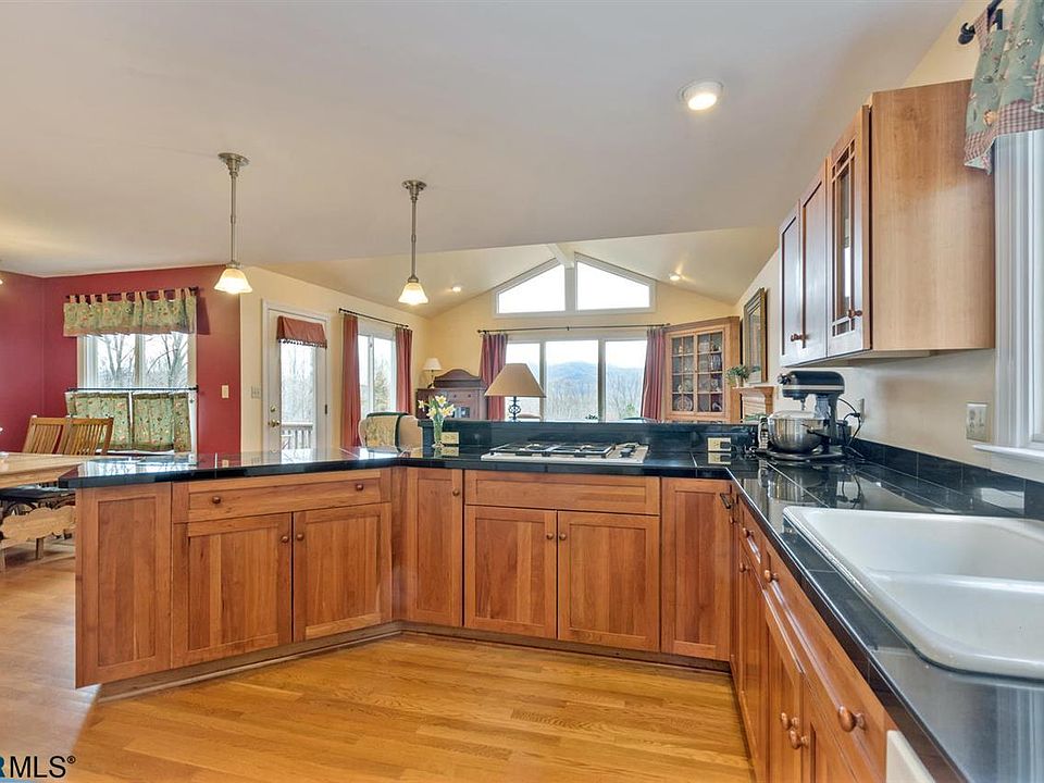 The gorgeous MOUNTAIN VIEWS, even from the basement will take your breath away, watch the seasons change and enjoy the wildlife. Like new custom home with soaring cathedral ceilings, hardwood floors, gas fireplace, gourmet kitchen with custom cherry cabinets, walk in pantry, double ovens, gas cooktop, granite tile countertops, and cozy breakfast nook.The open floor plan allows for light to fill the spacious rooms and flow for entertaining. The terrace level has a one car gagage, craft room, rough in for another bath, storage and high ceilings if you want to finish more space. The master bedroom has a tray ceiling, walk in closet, master bath with tile floor and jetted tub. Laundry on the second floor and 2 other inviting bedrooms.