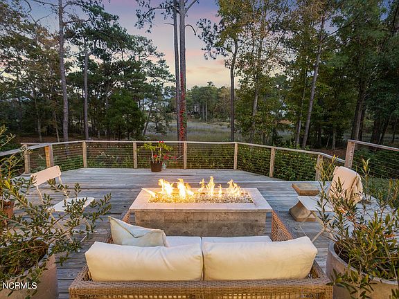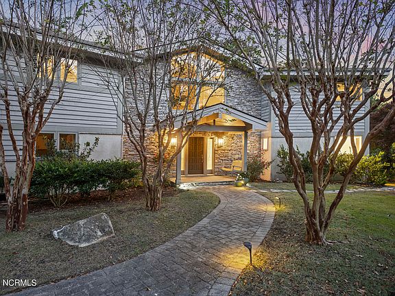 Coastal, luxury living at its finest with this contemporary masterpiece! This 4 bedroom, 3 ½ bath creek-front home, nestled within the prestigious Landfall community, boasts new kitchen with high-end appliances and custom cabinetry, new master bath, new engineered oak flooring, painted throughout inside and exterior, new roof, steam shower, 22kw whole house generator and extensive landscaping to include boardwalk and kayak launch. A very open floor with soaring 2 story floor-to-ceiling glass, tons of natural light and breathtaking views of the creek and wildlife. Additional features include first floor master suite, 2 story stacked stone fireplace, front and back stairs and large bonus room. End your days as the sun sets, casting a golden glow throughout! Located at the end of a cul-de-sac, this location makes for private, peaceful coastal living!