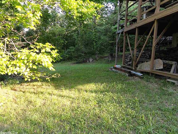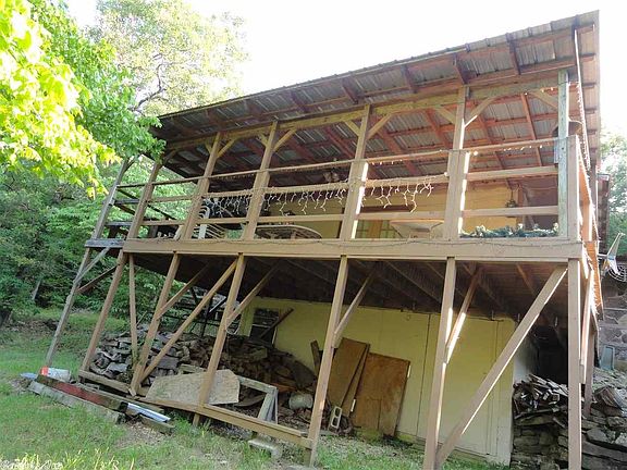 4 Bed 2 bath house with living room & den on a dead end road just outside of Leslie, AR. 4 sources of heat - central wood furnace in basement, wood stove in living room, heat pump (3 yrs old) or propane space heaters. Metal roof with concrete & rock walls make this home maintenance free & built sturdy & solid. Carport as well as covered storage area on the side of the house, small shop area in the walk out basement/safe room area, covered side deck with wrap around covered walk deck.