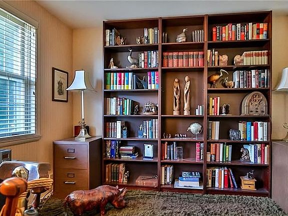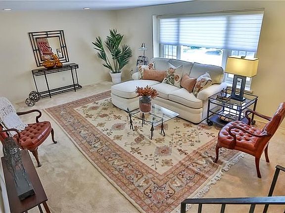 Tucked away near end of the cul de sac. Charming tree lined street. Bright and open Entry with access to Powder Room, laundry and sunny Den with guest room potential. Open concept Living Room and Dining Room with huge windows allowing sunlight to fill both spaces. Access eat in Kitchen from both the LR and DR. Just off the Kitchen is the walk out daylight Family Room with wood burning fireplace in an angled floor to ceiling brick wall, 6x6 nook with built ins, 6x4 walk in closet and sliding glass doors to a covered 19x11 patio and easy to maintain yard. Family Room is also off the Entry giving it easy access to the Powder Room. 3 comfortable upper level bedrooms including Owner's Suite with attached full bath plus roomy Hall Bath. All bedrooms have double closets. True 2 car garage. Double concrete driveway. Cul-de-sac, not a cut through street. Close to St Clair Hospital and Jefferson Middle School. Paved path to Hoover Elementary at end of street, no streets to cross.