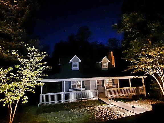 4 BR / 3 bath cape cod style with a full 360 degree wrap-around porch. Large stone fireplace on main floor, with woodstove in the lower level and outdoor firepit area. Bonus rooms for media or game room usage with plenty of storage on all levels.