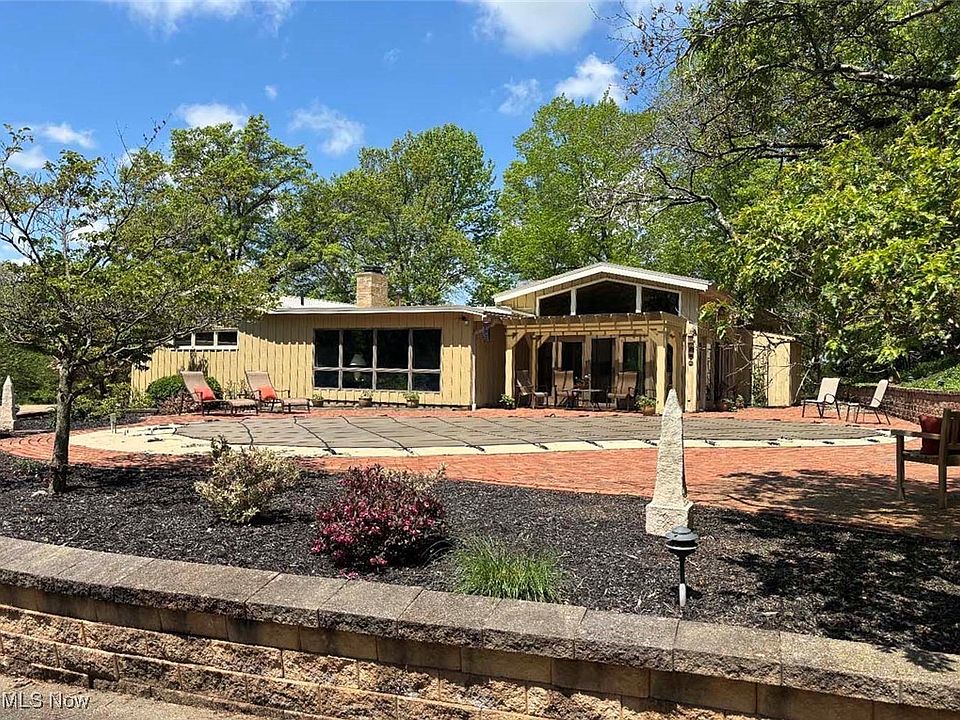 Very clean, well-built, one-owner mid-century contemporary ranch on 4.2 acres in Minerva, Ohio. Hilltop setting with terrific views, woods to the rear. The home has 2,576 sq ft on the main level with an open floor plan. Large kitchen with appliances and solid surface countertops opens to a large family room with a fireplace. Formal dining room and living room with fireplace and cathedral ceilings. Attached rear sunroom overlooking a nice inground pool. Main floor laundry, 2-car attached garage with half bath for pool guests. The lower level is finished with 934 sq ft, rec room, and a full bath. Brick paver patio around the pool, storage shed, 20 x 20 barn with overhead door, and two concrete driveways. Vacuflow system, 200 amp breaker electric, and public water and sewer. Awesome property, well-maintained and ready for the new owner!