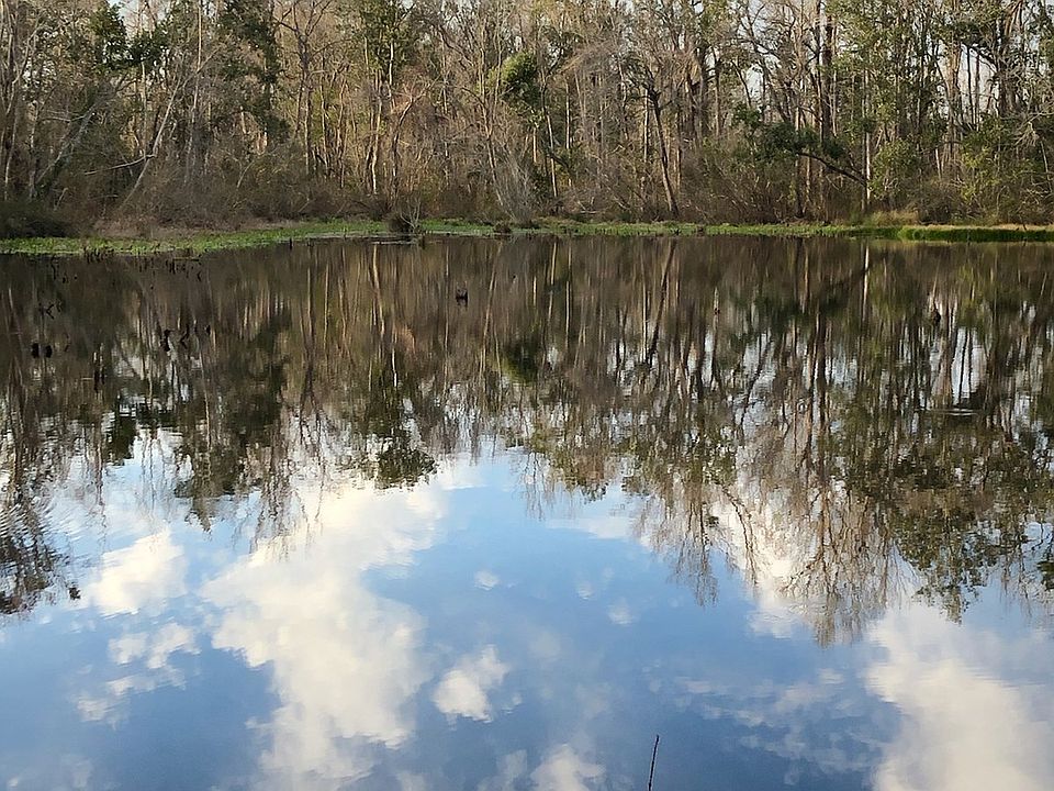 Incredible chance to have it all. 30+ acre property with spring fed pond, in-ground salt water pool, storage sheds, 4 bedroom 2 bath house that is private!....no visible neighbors!!! Perfect for horses or cattle or just for you and your dogs to relax in peace and quiet. Close enough to town and the beach without the daily hassles of living in either.