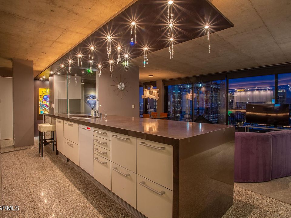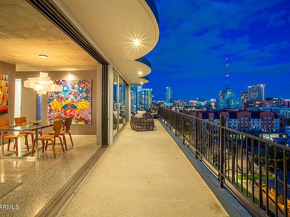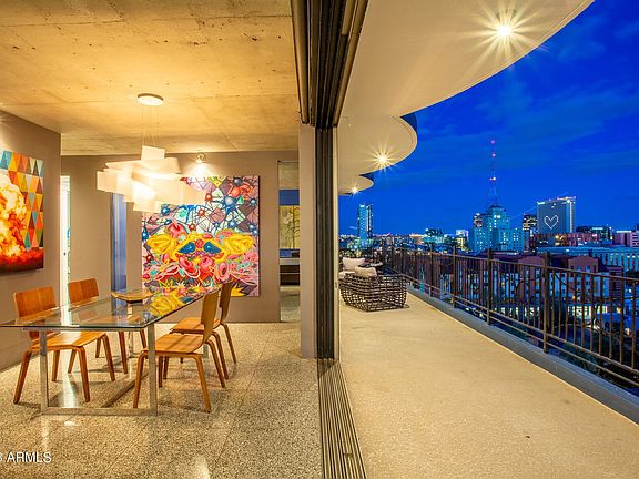 Stunning Penthouse in the heart of the downtown Phoenix's Roosevelt Row. Currently used as a high-end, furnished executive monthly rental almost exclusively rented by professional athletes, relocating CEOs, or business owners who want an impressive full or part-time residence downtown.The PH4 design features an open floor plan that makes the most of the magnificent views offered by 46' sliding glass walls leading to the 600 square foot wrap-around balcony. The residence offers unmatched privacy, with a secluded indoor & outdoor space. The interior finishes include hand-poured terrazzo floors, a contemporary Kitchen, 6cm matte-black quartz countertops, and a temp controlled wine-room. HOA fee includes all electric, water-sewer-trash, amenities, parking & security. (more)