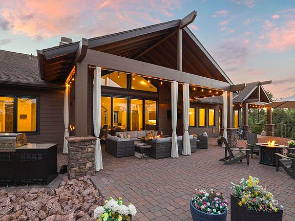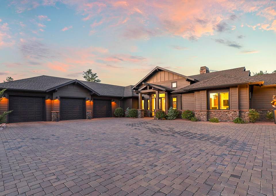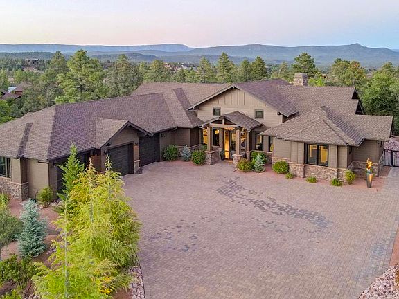 Welcome to elegance in the cool pines! This stunning 2019-built mountain retreat is a single-level masterpiece, designed for comfort and luxury. Step into an open living space adorned with vaulted ceilings, arched doorways, and eight-foot doors. Floor-to-ceiling windows and a grand stone fireplace create a cozy yet spacious atmosphere. Enjoy the breathtaking views from every angle, with natural light flooding this charming home. Seamlessly connecting to the family room, the kitchen features a large island, farm sink, stainless steel KitchenAid gas cooktop, and beautiful cabinetry. High-end appliances, including a refrigerator, microwave, and dishwasher, make this kitchen a gourmet's dream. The split floor plan ensures privacy, with a spacious primary suite that includes floor-to-ceiling windows and patio. The luxurious primary bathroom offers a large soaking tub, walk-in shower, and dual vanities. Two additional ensuites, each with walk-in closets, provide ample space for family or guests, along with a convenient half bath. The extra-long three-car garage features epoxy flooring, and the home boasts foam insulation for energy efficiency. Situated on a cul-de-sac, this .82± acre property offers stunning mountain views and serene surroundings. Outside, enjoy the beauty of large trees, a paver driveway, and a walkway to the backyard with an iron gate. The covered back patio is perfect for morning sunrises and cool, shaded evenings, with sitting areas to relax and unwind. This gem won't last long—experience mountain living at its finest! Required Membership must be purchased minimum Trailhead (non-golf) for $7,500.00 at close of escrow and monthly dues thereafter.