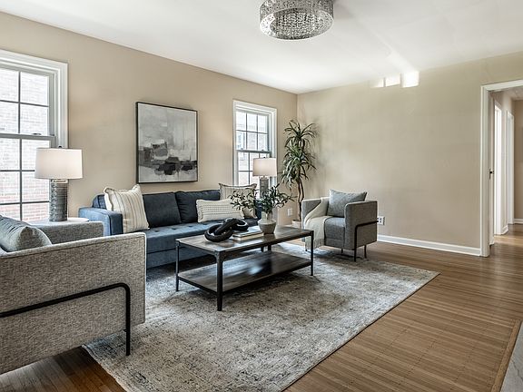Discover this adorable bungalow in Historic Irvington! Featuring refinished hardwood floors, 2 bedrooms, a remodeled full bath and a primary suite with a walk-in closet and 1/2 bath. The thoughtfully designed, remodeled kitchen boasts bamboo strand floors, Corian counters, stainless steel appliances, and abundant cabinetry with stylish recessed and cabinet lighting. Entertain in the finished basement with a wet bar! Additional storage space & laundry room complete the space. Outside, the wrought iron railing highlights the new concrete front porch, sidewalk, and driveway. The 2.5-car garage comes with Wi-Fi, and a new concrete covered porch, ideal for grill masters! New HVAC ('22), water heater ('23), windows ('14), whole home RO system & more! This meticulously maintained home is a true gem!