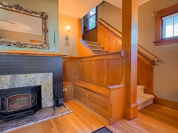 - Description: Built-ins, wood floors, fireplace, ceiling fan