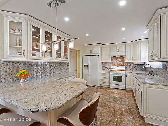 Welcome to this fabulous, updated home that is ready for you to move right in! The first floor boasts an open floor plan with a spacious living room with a beautiful window & hardwood floors adjacent to a perfectly situated dining room that flows into an absolutely stunning kitchen! The kitchen features custom cabinetry, granite counter tops & a large breakfast bar for additional seating! Upstairs is a wonderful, sun-lit master suite w/ a bathroom as well as two additional bedrooms & a gorgeous spa-like hall bath. The lower level showcases an outstanding family room w/ a fireplace & sliding patio doors leading out to the large patio & an additional full bathroom. The basement has a large, updated rec room & laundry room. The spacious backyard is an oasis w/ a large patio, great gazebo, many fruit trees & lush landscaping! The home is walking distance to schools, parks & tennis courts! Hardwood floors are under the carpeting in all of the bedrooms.