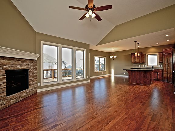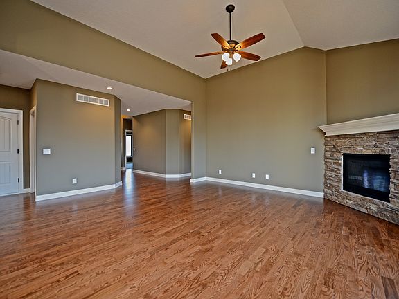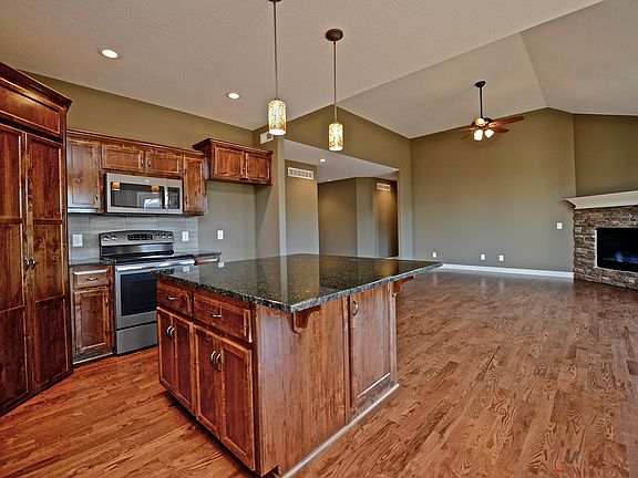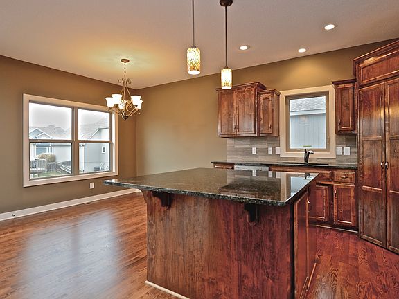 Very open plan features granite counters, walk-in pantry, hardwood floors, lawn irrigation system, large MBR walk-in closet, tile floors, high efficient furnace w/ humidifier, insulated garage doors w/ openers, custom stamped patio, metal spindles, corner fireplace, tiled shower, whirlpool tub, 5x4 suspended concrete room, finished walkout family room, R-49 blown attic insulation, smart trim exterior, full exterior house wrap, Main floor laundry. walking distance to both pools, picnic shelters & play areas.