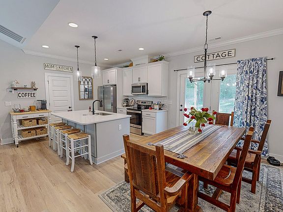 Nearly Brand New 2022 Home in a Great Timberlake Location!! So fresh and so Clean, this Home has been Meticulously Cared for and Feels Untouched! You'll be Welcomed by Cathedral Ceilings, a Gas Fireplace and a Nice, Open Floor Plan! Dreamy Kitchen with a Huge Island with Counter Seating, Stainless Steel Appliances, Quartz Countertops, and a Tile Backsplash! Walk out to the Back Patio Covered by a Pergola and Enjoy your privacy in the Backyard! Outbuilding to Hold all of Your Outdoor Necessities! Board and Batten White Vinyl Siding with Black Finishes Wows you before you even open the front door! Don't miss 805 Ned Moore Road in Timberlake, NC!