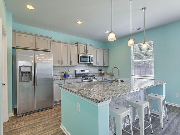 This beautiful 4 bedroom 2.5 bath home on a quarter acre private lot is located in the highly desirable Spring Grove Plantation! Upon entering the open foyer, you'll find a formal dining or office/playroom space with double doors. The open concept kitchen and living area features new luxury vinyl planking flooring, tons of natural light, a cozy gas fireplace and beautiful views of the wooded backyard. The kitchen features granite countertops, upgraded gray cabinets, gas stove and huge walk-in pantry. Upstairs is an enormous primary bedroom with walk-in closets and en-suite with dual vanities, large walk-in shower and linen closet. You'll also find the three additional bedrooms, separate laundry room and a large guest bathroom. This home also features PAID for solar panels!! Don't miss out! and a front/backyard sprinkler system. This private backyard which backs up to protected wetlands is one you must see!