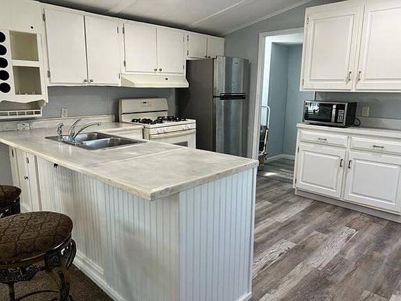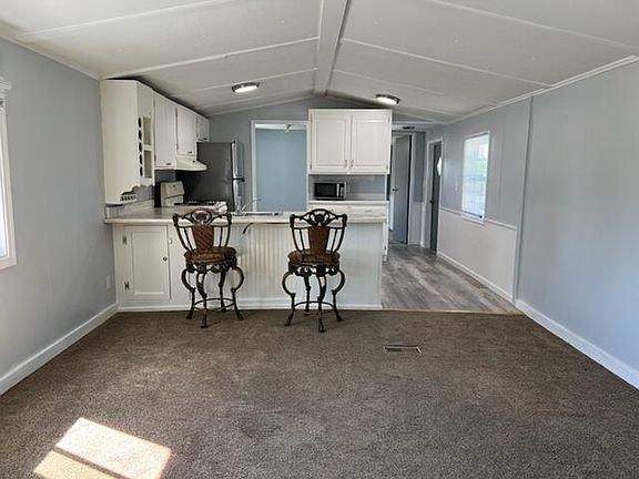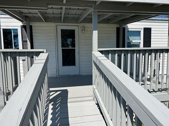 Updated, fresh, and clean--ready for new owners! This sharp singlewide on a double lot on the north east side of Stockton is move in ready. Paint, flooring, windows--all new. Updated HVAC! Storm shelter easily accessed out the back door! Sturdy front ramp makes the porch easily accessible. Back deck provides access to the large back yard. One-car carport stays with the house andso does the refrigerator. You'll love the updated paint colors and flooring! The open concept living space at the center of the home combines the kitchen with the living area and is separated by a generously-sized breakfast bar. The laundry room and utility area off the kitchen have space for a full sized washer and dryer. The primary suite with a private bath and walk in closet is on the west end of the home. The two other bedrooms and full bath are on the opposite end bedroom . The far east bedroom has a private access to the second full bathroom. The double lot joins an open pasture with no neighbors to the north or west. A storage building with electricity is behind the house. Quick access to the library and the convenience store. So much to offer and move in ready!