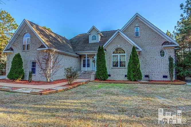 Water access community of Olde Point showcases this beautiful all brick home that is close to golf, tennis, pristine beaches and the intracoastal waterway yet tucked away on almost a half acre lot offering 3 bedrooms, 2 baths plus a bonus room. Features include hardwood laminate flooring in all living spaces including bedrooms, beautiful kitchen with tile flooring, 42'' wood kitchen cabinets offering plenty of storage, granite counters with tile backsplash, volume ceilings in great room and dining room. Split bedroom plan with huge master suite on one end of house and two bedrooms opposite. Master bath has tile flooring, great sized tiled walk in shower with tile bench, separate Jacuzzi tub, and two sinks. Grilling deck in the back yard with adjacent spacious screen porch accessible from great room, kitchen and master suite. Enjoy showering off after the beach or boat in the private outdoor shower. Private feel to the yard with 14x20 shed in back for additional storage.