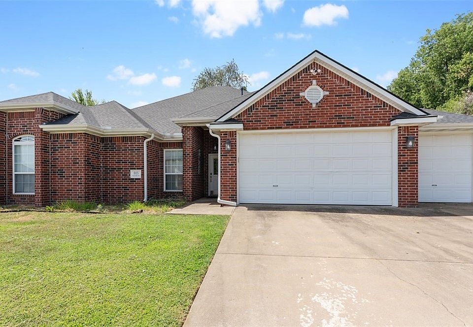 Welcome to this spacious 4 bed, 2 bath home featuring LVP flooring and crown molding in the living room. The kitchen boasts a pantry, island, and dining area, complemented by a formal dining room. Enjoy privacy with the split floor plan and a large laundry room connected to the master suite. The master bathroom offers a whirlpool tub, stand-up shower, and double vanity. Outside, an all-brick exterior, covered patio, large yard with privacy fence, and a 3-car garage complete this charming property. Ideal for comfort and style.