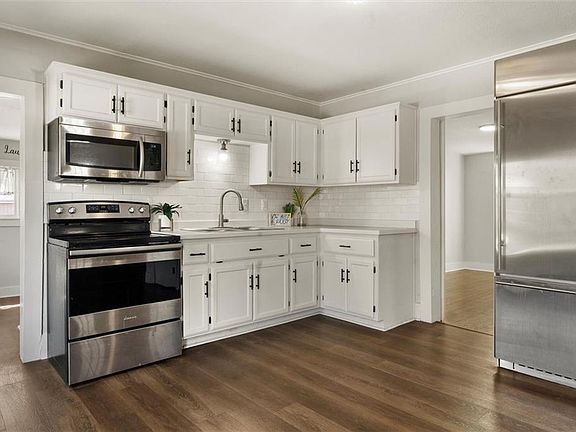 Experience charming vintage living in this modern ranch home. Enjoy one one-level living with this 3 bedroom/1 bath, home with a pantry and laundry room just off the kitchen. The newer Stainless steel appliances and the washer and dryer remain with the property. You'll love the original hardwood floors, the updated barn door to bedroom #2, and the thermopane windows. Great location is the added bonus, this home is next to walking trails, fishing, a park, the historic district, a golf course, and the famous Dari B is all nearby! Come take a look! *some of the photos used in this listing photos include virtual staging.