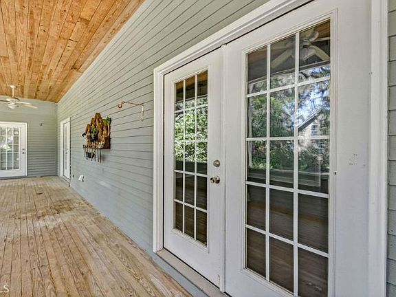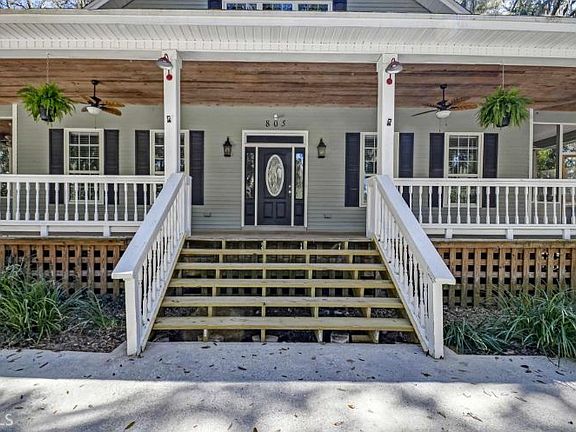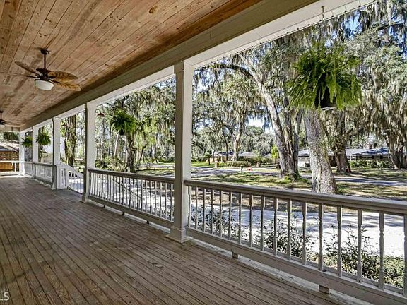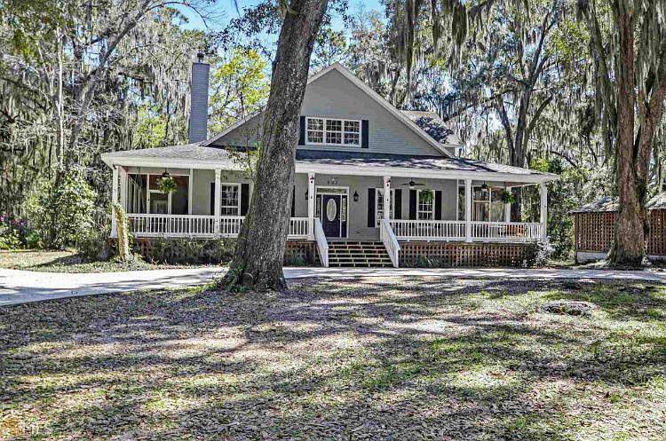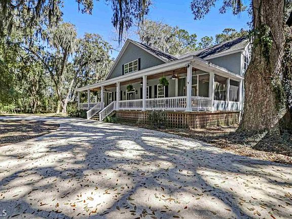 A southern charmer is sitting in the midst of large old oaks; dripping with spanish moss. Wide porches greet you and swings beckon to have you sit and stay a while. This home was built for family and entertaining! Lovely rustic wood floors flow as you enter. Freshly painted throughout in quiet coastal color. A large Living room asking for pretty throw rugs and plenty of seating is just to your right and on the left, the dining room for your formal occasions, or perhaps you would prefer to finish it off into a den? The kitchen is open to an expansive breakfast area with windows and book cases galore. Would you believe there are three large bedrooms, each with a private bath on the main floor? One of them includes a private sitting room! These rooms all have new carpet as does the staircase and upstairs living space. Yes! There is more! Upstairs are two additional bedrooms and a bath. Every home should have some fun and this one has it built in; its very own movie theater! Red carpet and a big screen with theater seating. Come take a look, this home is amazing! So much more to mention: a soaring trophy case, screened back and side porches, and an extra room for storage. Come take a look and imagine making this home yours then make it happen!