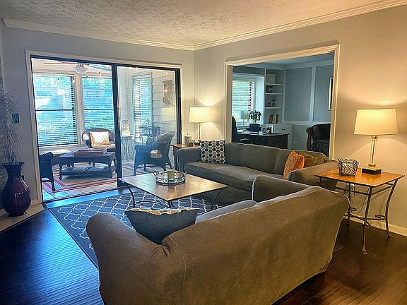 Enjoy East Cobb life in this fabulous location. Award winning school district (Sope Creek, Dickerson, Walton). Quiet swim and tennis community. Open floor plan condo, three bedrooms, 2 bathrooms, plus sunroom and no stairs. White kitchen with granite counter tops and white tile backsplash. SS refrigerator and dishwasher. Family room with stone gas fireplace opens to sunroom with large storage closet. Pool view from sunroom. Third bedroom currently used as office and can be converted back to bedroom. Bathrooms partially updated with granite top vanities and new lighting. Master bedroom with walk-in-closet and another large closet. Fresh paint throughout the unit. Laminate wood floor and high grade carpet in bedrooms. Walking distance to grocery/shopping and easy access to expressways. Will honor buyers agent commission. Call 678-427-0433.