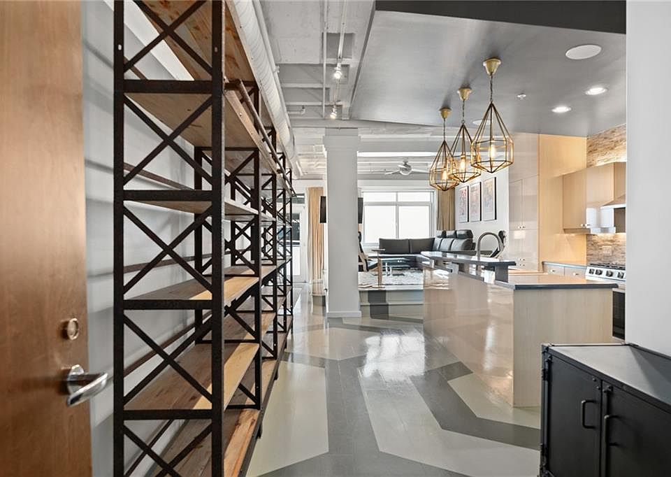 Formerly designed by the esteemed Reiner White Interiors, this custom condo boasts one of the building's larger one-bedroom floor plans, situated on the elevated 4th floor next to the elevator for added convenience and privacy with no neighbors on one side of the condo. Nestled away from the bustling streets, it offers serene living with dual-paned glass windows and doors ensuring peace and quiet.  Thoughtfully designed, it features unique room separations, including a raised living area, custom sheer drapes dividing the bedroom and custom window shades. An additional nook area incorporates custom, built-in closets and desk, perfect for a separate office or workspace. The oversized bathroom has two entrances for added convenience for guests. Bold painted hardwood floors, fresh paint throughout and ample storage, including a walk-in laundry room, enhance the living experience.   There is even a rare, separate storage unit across the hall which provides even more extra convenience!  Rare custom lighting selections and a concealed, remote-operated projectable TV screen add value and sophistication. The current owner generously includes ceiling-mounted TV and speakers for added entertainment options. This condo also has two covered, gated rare parking spots and a full time concierge! Located within one of Midtown's earliest condominium conversions, this residence offers visionary design in a historic government building. Just a short distance from Georgia Tech, Emory, Peidmont Park, The BeltLine, Fox Theatre, renowned restaurants, and MARTA! This condo epitomizes upscale urban living.