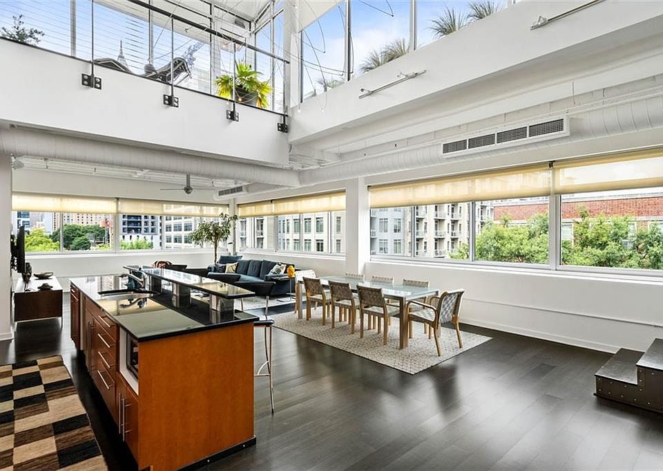 Welcome to the chic minimalist penthouse at 805 Peachtree. This stunning two-level unit boasts over 4,000 square feet of well designed space surrounded by floor to ceiling windows.  As you enter, you're greeted by an expansive open area that flows seamlessly into the dining and kitchen spaces, perfect for both everyday living and entertaining.  The penthouse features three spacious bedrooms and 3.5 bathrooms, offering the utmost in privacy and convenience. The primary suite is a true retreat, complete with an en-suite bathroom featuring a soaking tub, double vanities, and a walk-in shower.  For those who love to entertain, the upper level of this penthouse is a showstopper. The open-concept design includes a generous entertaining space that opens out onto a wrap-around balcony, where you can enjoy breathtaking views of the city skyline. Whether hosting a summer soirée or a quiet evening under the stars, this outdoor space is unmatched in its appeal.  Additional conveniences include a dedicated storage unit, and three parking spaces, making city living as seamless as possible. The amenities at 805 Peachtree include a fitness center, club room, pool with cabanas, EV chargers, and guest suites.  Imagine starting your day with coffee on your private balcony, taking in the panoramic views of Atlanta, or ending the night with a glass of wine, watching the city lights twinkle. This penthouse offers a unique blend of luxury, comfort, and convenience, right in the heart of the city.