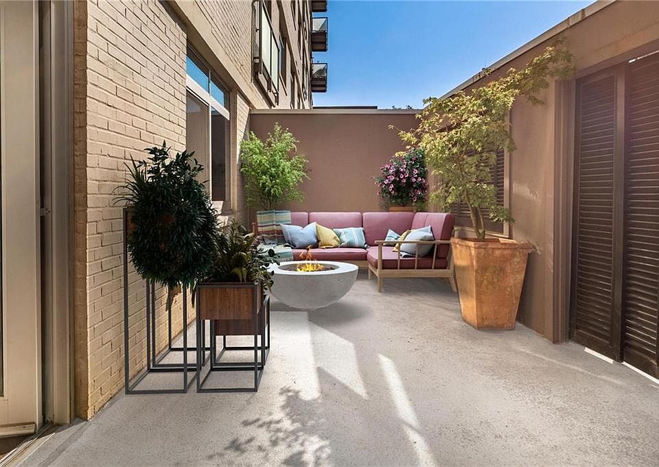 This unique END UNIT is something special with its fantastic poolside location, one of only four in the entire 805 Peachtree community. Imagine having French doors that open up to your own private patio, effectively expanding your living space.  Create your own personal outdoor living room with your oversized patio furniture, lush tropical plants and trees, and other options suited to your own taste.  Step through your sliding privacy doors into 805’s sanctuary complete with saltwater pool and cabanas, a cozy gas fire pit, and grilling area – all the fun without the maintenance!  Home has been completely repainted in a neutral color and looks stunning with the new Luxury Vinyl Plank flooring featuring a rich walnut finish.  The “U” shaped floorplan creates a large open living and dining area, while providing for an oversized bedroom and separate office space. Kitchen is equipped with high-end SS appliances including a Wolf Pro-series gas range. Bath features modern styling, a jetted tub, and extra storage cabinetry.  Windows have been tinted with a sunblock film.     805 comes with all the perks including a top-notch fitness center, clubhouse with catering kitchen,  24-hour concierge, on-site building management, secure parking, 2 guest suites, a building diesel generator, and super-fast Google Fiber internet.  Plus, there's a storage unit included.  Community is within walking distance of the Fox Theatre, Piedmont Park, the Colony Square Complex and Food Hall, ACE Hardware, and plenty of dining and entertainment options right outside the front entrance.  Custom lined black-out draperies, washer, and dryer are all included.