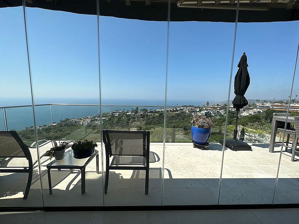 180 Degree Sit Down Ocean, Whitewater / Coastal Views, N. Coast Lights, Catalina and San Clemente Views All Totally Unobstructable Forever! Light and bright sun all day, year round sunsets. Both living room and master bedroom have fold back glass walls which opens the room, view and deck into one expansive space. Home backs to dedicated open space full of wildlife and natural terrain. Quiet, peaceful and serene. Crisp, contemporary home has two fireplaces, hardwood floors, and expansive decks. Lower bedroom and additional office / den have views, outside entry and private ground level patio. The home is equipped with a $75,000 emergency fire retardant system.