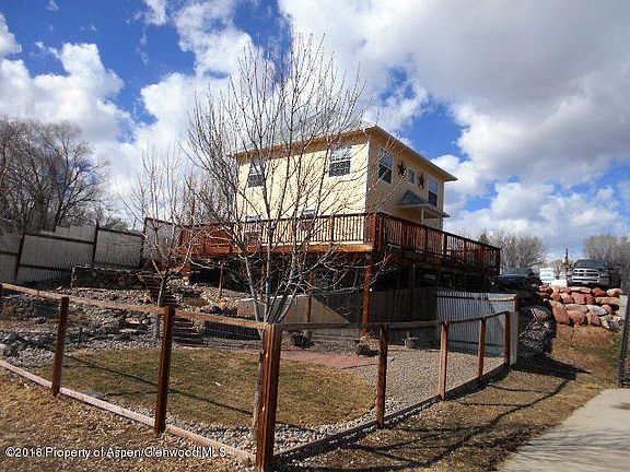 A BIG FAT FISH was swimming by in Rifle Creek as we put out the For Sale sign on this unique property with creek frontage and an awesome 3 bedroom 1 3/4 bath home in excellent condition with a large family room in the basement just right for hosting get-togethers or a great place for a game room. The relaxing wrap-around deck has awesome views, the fenced yard has raised beds for flowers or veggies, and the extra lot is included and is great additional parking or storing toys. Located adjacent to Rifle Middle School playground, this property is minutes from Centennial Park and the walk path.With over 1/2 acre of land, It's a big catch at a small price!!