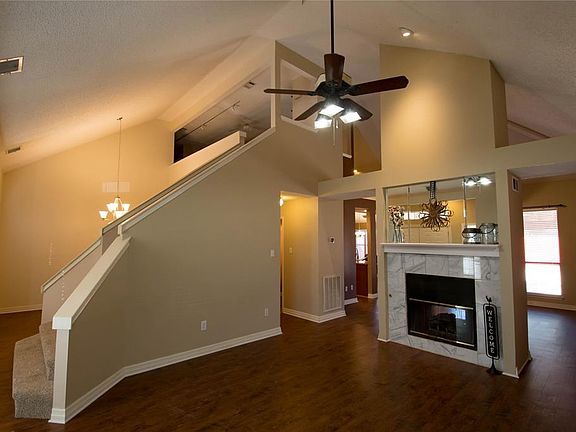 LOCATION LOCATION!! Awesome home located within minutes of shopping and restaurants. Double entry doors lead to split living area with custom wood plank wall, tall ceilings, dual fireplace and wall of windows overlooking large covered patio and backyard. Updated kitchen features custom cabinets, granite counter tops, stone back splash and tons of storage. Breakfast room with window seat and plantation shutters. Large dining room with updated light fixture. Master suite with plantation shutters and updated bath featuring large walk in shower with dual heads. Upstairs you will find a large playroom, spacious bedrooms and updated bathroom. Garage has epoxy flooring and wall of peg board. A Must See!!