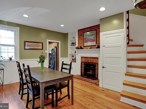 An architecturally significant historic and charming townhouse centrally located in the heart of the Original Fells Point Historic District . This highly desirable Federal era townhouse features heart pine wood flooring throughout except in the kitchen where the unique flooring is constructed of brick. This kitchen may have been added 100 or so years ago and serves to increases the footprint of the house. It does not appear that the Baltimore City records reflect it's existence. Another of its unusual aspects is its tin ceiling. The extra space provided by the add on kitchen offers a good bit more room for the entertaining area which is additionally enhanced with a ground floor level powder room. The wrap around yard is on the smaller side albeit large enough to provide room for the grill and running room for the pets. There are 2 bedrooms located on the second floor while the third floor has 2 more loft style bedrooms but because they are not private we consider them only as 1 . Parking for this area is by city permit, however, located within less than 2 blocks, public monthly parking can be found in 2 garages as well as 2 parking lots. A good coat of gray interior paint could go a long way into bringing this house in line with contemporary tastes. Please note the Matterport reads 808 S. Bond. The correct address is 805. Enjoy the self directed tour.