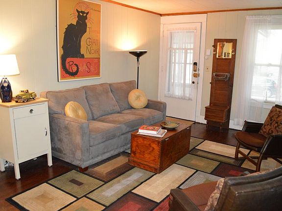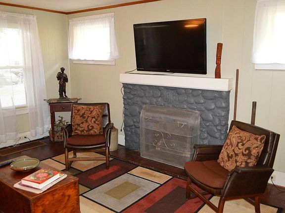 Simply adorable Cape Cod bordering Baker Park on 2 sides! Two nice sized bedrooms & full bath on main floor that feature hardwood floors & a cobblestone fireplace. EIK w/new ss appliances & great light. Remodeled bathroom w/new shower, ceramic floors, sink & toilet. Laundry on main floor for ease of convenience. Upstairs is used as storage, ceilings are low but it could become finished space. Screened in front porch & lovely back porch w/jalousie windows perfect for relaxing. Fenced in yard w/a large 2 car garage & walk up attic. Main level bed/bath & ramp makes this handicap accessible!