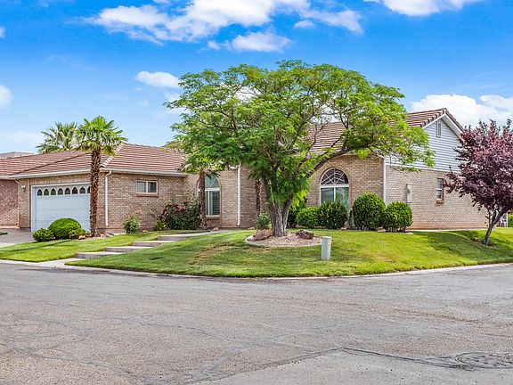55+ Community in Preferred Retirement Destination of St. George, UT in the highly sought after Meadow Creek Estates subdivision. Come see this beautiful and well-kept home built in 1993 with 1,696 sqft,, 3 bedrooms plus a flex room that can be used as an office/den/formal dining room, 2 full bathrooms, 2 car garage. Includes washer/dryer/refrigerator. Jetted tub and walk in shower in the main bathroom. Views of the pond from the main bedroom. Home is located in the middle of the community away from heavy traffic noise. Close to hospital, restaurants, grocery and shopping. HOA is $232/month and includes clubhouse, full yard maintenance, internet, roof, community pool/jacuzzi, tennis/pickleball courts. This is the perfect primary or second home. Retire in active style and comfort.