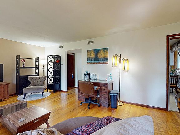 This charming Cape Cod 1.5-story home is situated on a quiet residential street just off the blue bus line and near numerous shopping, dining, and school options. The home offers original hardwood floors throughout the first floor living spaces, hallways, and bedrooms. The large living room features a wall of windows overlooking the backyard. The back door opens onto a large deck overlooking the fenced backyard with a canopy of mature trees. The versatile floor plan features two bedrooms and a full hall bath on the first floor and another pair of bedrooms flanking the second floor bath. The larger upstairs bedroom features original knotty pine paneling and a multitude of built-ins. There's also easy access to an attic storage closet space. Most of the house features modern vinyl replacement windows, and windows are oversized throughout, providing for excellent natural light. The converted garage space offers abundant storage, as well as being home to laundry. Don't miss out on an extraordinary opportunity for four bedrooms and two full baths in a desirable location. See HD photo gallery and 3D tour!