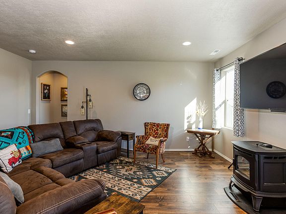 Looking for the ultimate blend of comfort and modern living? This stunning single-level home boasts an inviting open concept layout across 1,574 sq ft, featuring 3 spacious bedrooms and 2 bathrooms. Enjoy the warmth of a pellet stove, while ceiling fans and abundant windows create a bright and airy atmosphere. The home also feature upgraded fixtures in the bathrooms and kitchen. The larger garage offers ample storage, and the beautifully landscaped backyard is an entertainer's dream, complete with a generous covered porch perfect for gatherings and the potential for a hot tub. Plus, relish breathtaking mountain views that enhance your outdoor experience. Don't miss out on this perfect retreat!