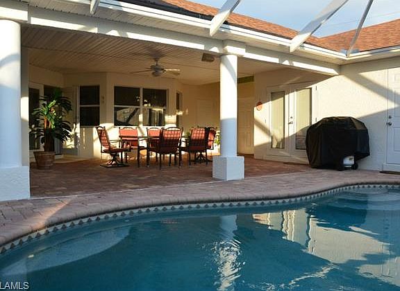 This is your sanctuary! Beautiful waterfront courtyard home with mother-in-law-suite, 4 bed/ 3 bath, private pool and spa. Enjoy the complete privacy at your luxury pool and spa, water views from your living room and all the possibilities that a separate mother in law suite offers: Make it the perfect guest room, your professional office or hobby room with that so much needed extra space. The open floor plan makes this home feel very spacious, it has tiles throughout for easy maintenance and many upgrades like the granite countertops in the kitchen or the plant shelves in the living room. The driveway and lanai are enhanced with beautiful mediterranean pavers. Close to all shopping and entertainment. Attention Investors: This home is an extremely well rented vacation home with many established customers.