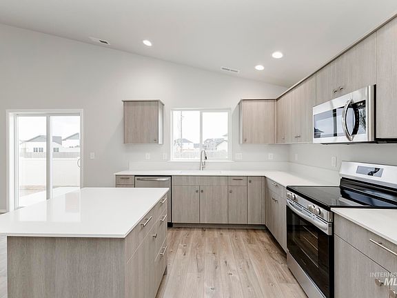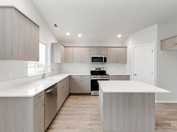 This new home located in beautiful Mountain Home, Idaho has all the comforts you need & more! Dreams do come true in the Harrison 2025! Get the single-level home you always wanted without sacrificing any living space. The outside world will melt away while you relax in the bright & sunny living room at the rear of the home. The kitchen comes with stainless steel appliances and stylish solid surface countertops, adding both functionality and aesthetics to the kitchen. Discover an oasis of solitude in the primary suite with its enviable walk-in closet, dual vanities, and two refreshing windows. The concrete patio entices you to spend time outside so you will not miss even a moment of nice weather. Love where you live in the Harrison. Photos are of the actual home!