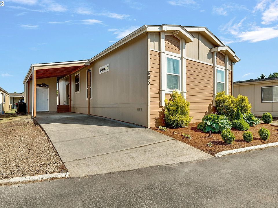 Stunning & rare 4 bed, 2 bath double wide manufactured home located at Heritage Village. Built in 2006, this home offers a nice open floor plan, massive kitchen with island,spacious living room, 3 guest beds on the opposite wing of the home, high ceilings, large primary with huge bathroom & his and her sink, laundry area, tool shed, oversized carport, and massive fully fenced back yard perfect for entertaining. Come check it out! Space rent is $1,203 is a month. Includes: pool, shed, community room, and parks.