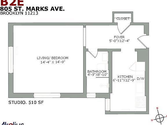 This 510 square foot apartment home has 0 bedrooms and 1.0 bathrooms. This home is located at 805 Saint Marks Ave APT B2E, Brooklyn, NY 11213.