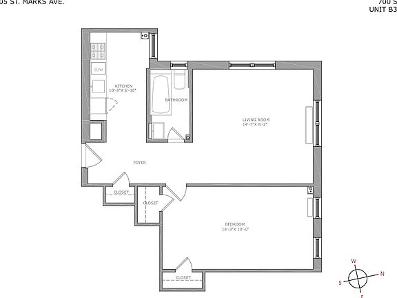 This 700 square foot apartment home has 1 bedrooms and 1.0 bathrooms. This home is located at 805 Saint Marks Ave APT B3E, Brooklyn, NY 11213.