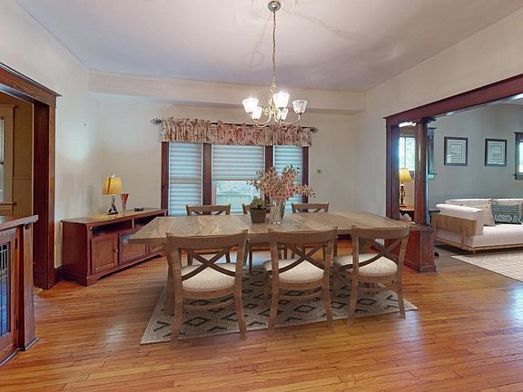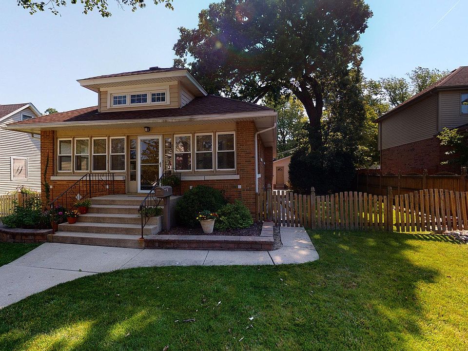Desirable 1920's Vintage Brick Bungalow with all the charm one could look for! Oak woodwork thru-out including built-ins. Large enclosed porch welcomes you to the home leading into the living room with hardwood floors and open to the dining room. Beautiful wood columns and trim accent the break between the two large living spaces. Kitchen with oak cabinets, granite countertop, tile backsplash, newer appliances and large walk in pantry. Three bedrooms all with hardwood floors and overhead lighting. Updated bathroom with ceramic tile flooring, ceramic tile shower surround, and large vanity with granite top that provides plenty of counter space. Basement with large recreation room, office, and a full bathroom. Laundry room plus tons of storage. Brick paver patio, concrete walkway, side and backyard, beautiful landscaping with a cedar fence. Two-car garage. ** Take a 3-D Matterport Tour or EZ in-person**