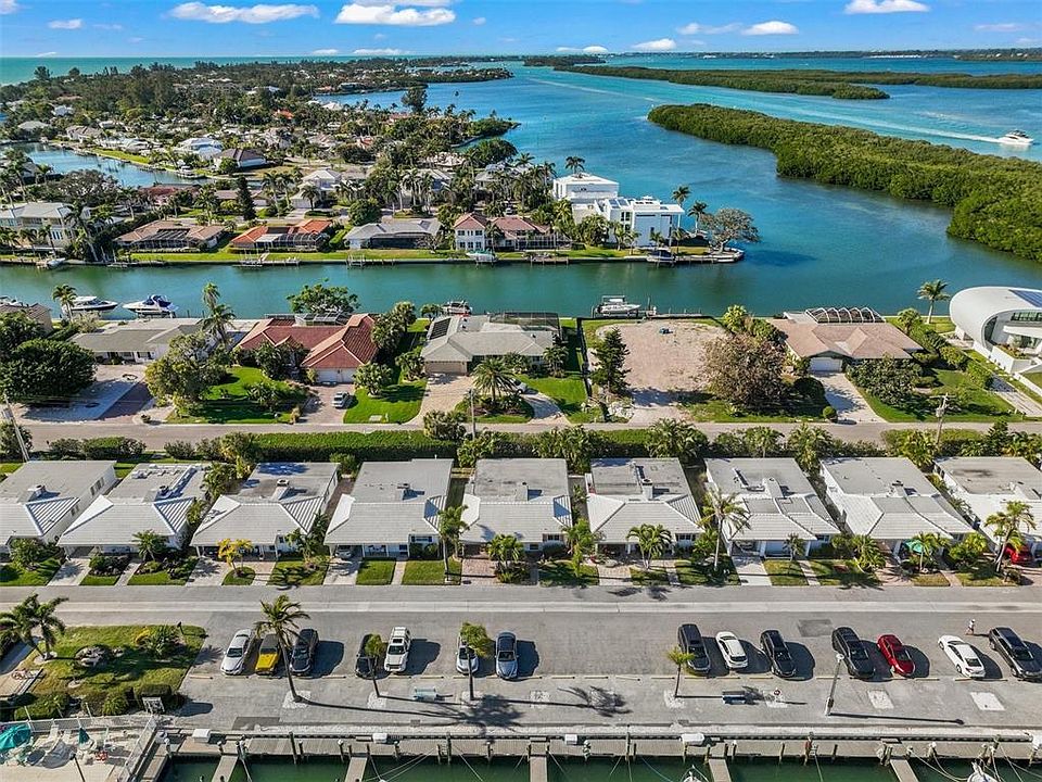 Wow! Fabulous water views on this deep-water 40-slip marina and expansive picturesque canal. A completely custom-designed and remodeled rare three-bedroom, two-bath stand-alone villa is a must-see. Enjoy morning sunrises relaxing on your expansive brick paver front porch overlooking the frolicking dolphins, extensive bird life and an array of manatees. From 2015-present, the owners chose quality and refinement throughout. Open and spacious, the designer kitchen has gorgeous quartz countertops, stainless steel appliances, 42-inch cabinetry with under-cabinet lighting and lots of storage, rollout soft-close drawers, glass backsplash, large under-mount double sink, new overhead lighting and more. The entire home has beautiful gray and neutral shaded Porcelain plank tile throughout, crown molding, hurricane resistant low-e glass windows and two access and egress doors. The flex area off the living room can be used for an office, dining area, reading or workout space. The baths have been completely and elegantly redesigned and truly a showstopper. Brand-new interior spacious laundry room with large washer and dryer, and additional closet area with extra built-in custom closets. This meticulously maintained beauty boasts further accolades: new roofs and 3-ton SEER Carrier with UV light (2015), privacy and energy-efficient shades added to all windows, all new interior doors, complete repainting, relined main sewer pipes, tankless electric water heater, air-duct cleaning and then an added third bedroom (2020). Now step outside to a gorgeous landscaped and well-cared-for yard with brick pavers surrounding the villa and brand-new, custom-built storage and outdoor shower. This is a boater's dream to have a Trex dock with electricity with water just outside a new Florida dream home that lives like a single-family house. This is a maintenance-free complex, pet-friendly, deeded beach access to the beautiful sands of Longboat Key, heated pool, clubhouse, kayak storage all within a warm and welcoming community. Newer and softer guidelines on the 55-plus. Restaurants, golfing, pickleball, shops, biking and more just minutes away. Unit tented for dry termite fumigation in 12/22 with transferrable warranty. Stylish furnishings available in a separate agreement.
