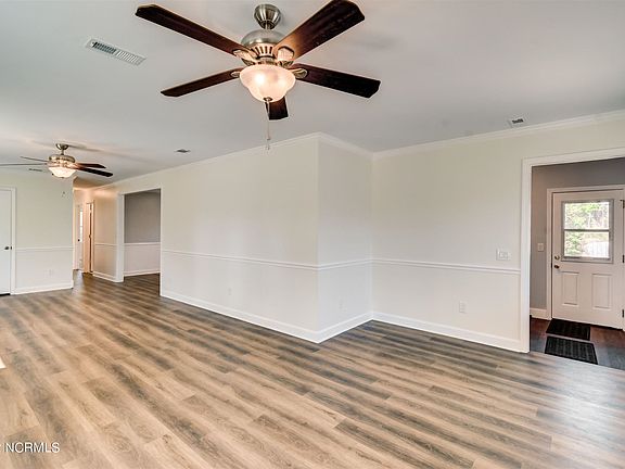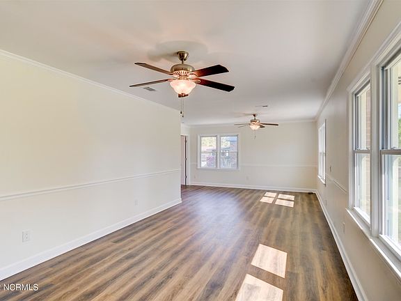 Tastefully renovated brick ranch in the desirable Kings Grant neighborhood. New roof, new windows, new waterproof LVP flooring and new carpet. Your Trane HVAC is only 5 years old. You'll love the smooth ceilings, chair railing and crown molding. Cooking will be a breeze with freshly painted cabinets, new farmhouse sink with a nouveau faucet and a nice size pantry. Remember to check out the updates in the baths as well. And outside? You'll find an inviting covered patio to gather with family and friends and a must have 24x26 detached wired two car garage. There's even a covered area in the rear for storing more equipment and toys. Your back yard is already fully fenced with established landscaping including Japanese Maples, Banana Trees and a beautiful Palm Tree. This home is near beaches and Histric downtown Wilmington! One year 2-10 Home Warranty included. At the end of the day your cozy fire pit completes the picture of your next home.