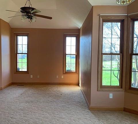 Lovely custom built all brick (with stone accent) ranch style home on 3-acre country setting parcel. Eat-in kitchen boasts of hickory cabinets, ceramic cooktop, Corian counters, custom design tile floor, and updated refrigerator and under-counter oven. Living room has propane fireplace, and dining area has tray ceiling with beautiful light fixture. Bay windows galore. Solid oak 6-panel interior doors. Main bedroom and adjoining bathroom are very spacious. Double vanity. Heated floor in front of jetted garden tub is a special bonus! New roof in 2017. New furnace in 2016. Garden shed is in backyard. 37x40 pole building has a cute covered porch and an overhead door on each end. Interior has a partial concrete floor and has been used to stable horses. Four horse stalls are negotiable. Paddock is pipe fenced and includes loafing shed. This building could make a great workshop. East/west property line has 4-strand barbed wire. Pond in front of the home is strictly a 'wet weather' pond with NO spring. This is a shared-well property with appropriate Agreement on file. A portion of the driveway is under a Joint Driveway Agreement also on file. Refrigerator, washer/dryer stay. Negotiable flooring allowance. 2022-05-06