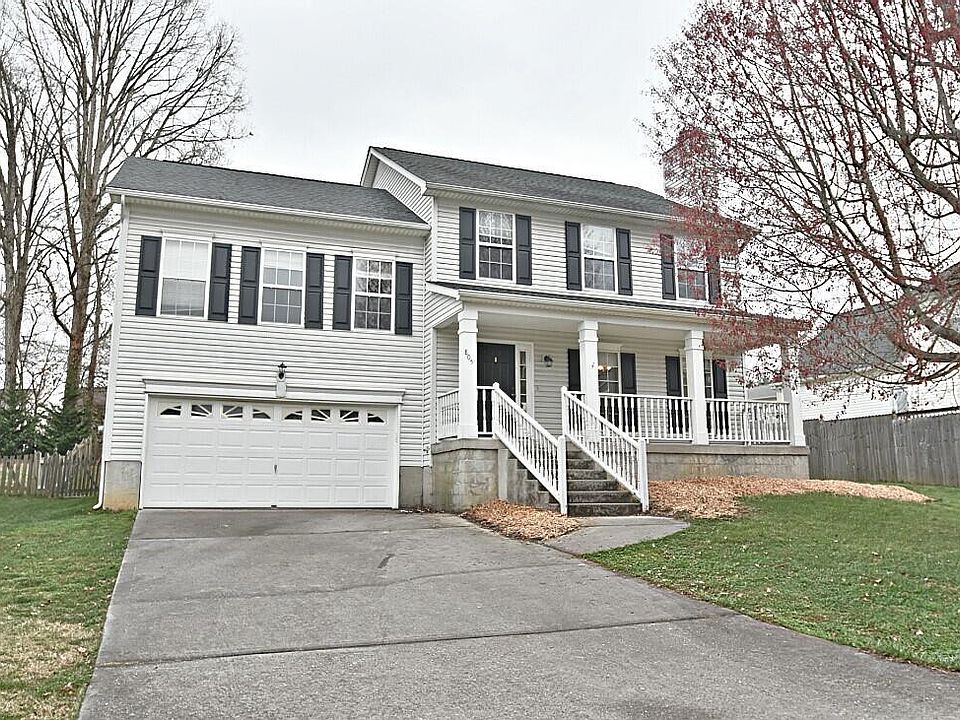 This appealing 2 sty home w/ inviting rocking chair front porch offers 3BR, 2.5BA plus big bonus rm* Great rm w/ gas frplce & crown open to dining rm w/ crown & door to deck* Kitchen open to dining w/ island & double pantry & pass thru to great rm. The upper level includes primary BR w/ 9' ceil open to ensuite bath w/ dual basin vanity/garden tub/sep shower/roomy walk-in closet* Big bonus rm w/ vaulted ceiling & huge storage closet which could be office area. Walk-in laundry off bonus. Back deck & wood fenced backyard* Super conv location close to shopping, restaurants, schools & interstate access*
