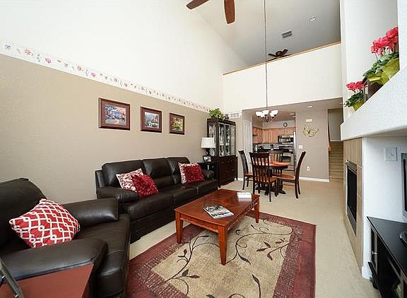 Lovely 2S townhome w/usable front porch looking out to greenbelt. This light, bright 2 bdrm boasts a tile entry, tasteful custom paint, vaulted ceilings & clerestory windows for plenty of natural light. The entry leads to an inviting 2-story living rm w/ceiling fan, gas fpl, art niche & media niche. The living rm flows easily to the dining rm ??? perfect for relaxed entertaining. The kitchen boasts tile flooring, maple cabinets w/under cab lighting, granite counters, and ss appl to include smooth top stove, refrigerator, and built-in microwave, plus canned lighting. This home has a main flr master bdrm w/ceiling fan, dual closets and a full mater bath w/soaking tub and upgraded fixtures. The upper level is host to a nice sized loft w/ceiling fan, a bdrm and a full bath w/a soaking tub! Additional features of this smoke free home include central air conditioning, an unfinished bsmt for future expansion, and a detached garage w/ GDO plus a reserved off-street parking space.