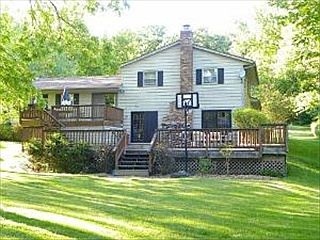 Nestled serenely on 2/3-acre wooded lot, you will find this beautiful quad-level home! Ready for new "green" owner, the flooring in this house is gleaming hardwood and tile - there is NO carpeting! Large walkout family room plus 4th bedroom in lower level. Sliders to huge stepdown deck with views of lush, green yards! Kitchen with solid-surface countertops; picturesque bay window in living room- quick sale possible!