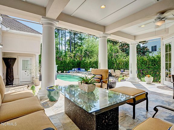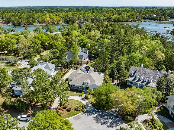 Quality built by Hagood Homes, this custom designed Mediterranean home features mostly one floor living with 3 bedrooms and 3 1/2 bath on one floor (including spacious master). There is additional 4th bedroom with bath, walk-in closet and floored attic. This open floor plan offers beautiful natural light and multiple access points to the large covered rear porch overlooking the heated pool. Enjoy the privacy and serenity from the lushly landscaped cul de sac location. The large chef's kitchen includes large walk-in pantry, unique granite tops, stainless appliance and huge gathering island. Enjoy the outdoors from the 430 sq ft covered porch with outdoor access to an additional 5th bath and even a separate additional laundry to take care of the pool towels!
