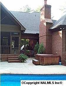 ELEGANT ENGLISH BRICK TUDOR 1 1/2 story home in Camelot S/D featuring 4 bedrooms and 3.5 baths. Master suite located on first floor. Vaulted ceiling, & hardwood floors. Open floor plan with two-story fireplace and cathedral ceiling in great room. Hardwood floors throughout first floor, travertine tile baths & shower, granite countertops on custom hand-glazed cabinets. Landscaped yard w/sprinkler system. Screened porch and inground pool surrounded by brick wall & iron fence.